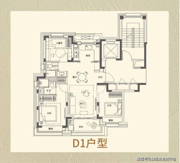 建面102平米的另一户型为市场上认可度比较高的飞机户型,空间紧凑,不浪费面积,使用率高。