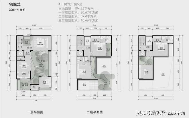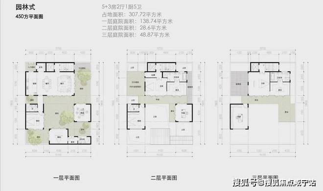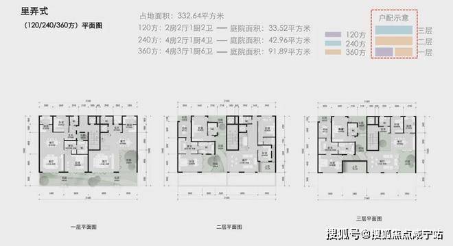 建面约290-360㎡宅院式合院;