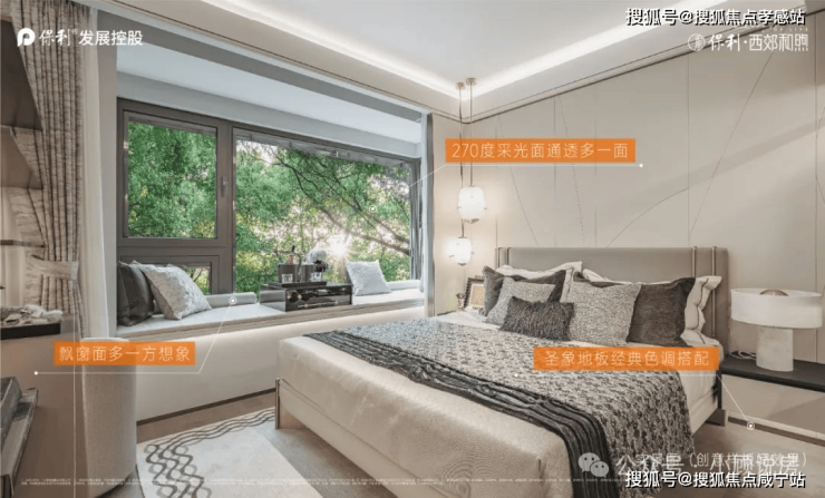 【保利西郊和煦】售楼处营销中心☎:400-8800-703✔✔次卧实现270°L型飘窗,双向窗户采光,可以轻松拓展出书桌及收纳空间,尺度感非常不错。