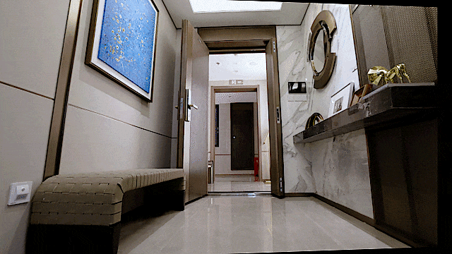 项目层高达到约3.15-3.3米(103-166㎡户型是3.15m层高,197㎡户型是3.3m层高),20cm层高的跃升,不仅让室内更通透,中央空调、地暖、新风装完后不显压抑,多出来的空间可放置更高的储物柜,增加收纳空间。