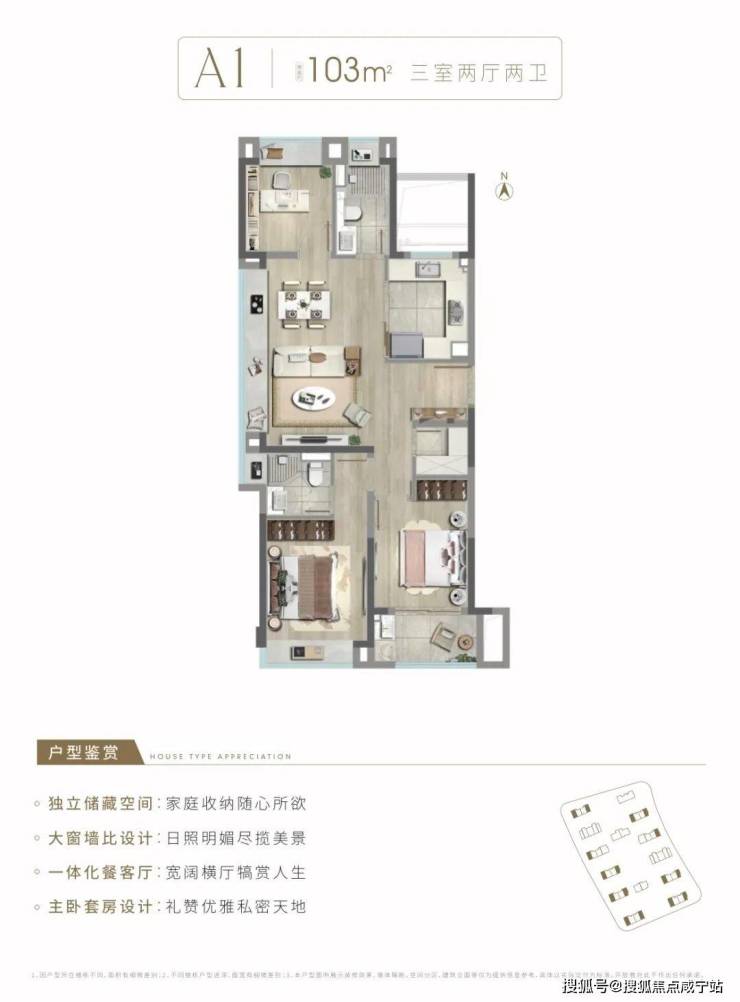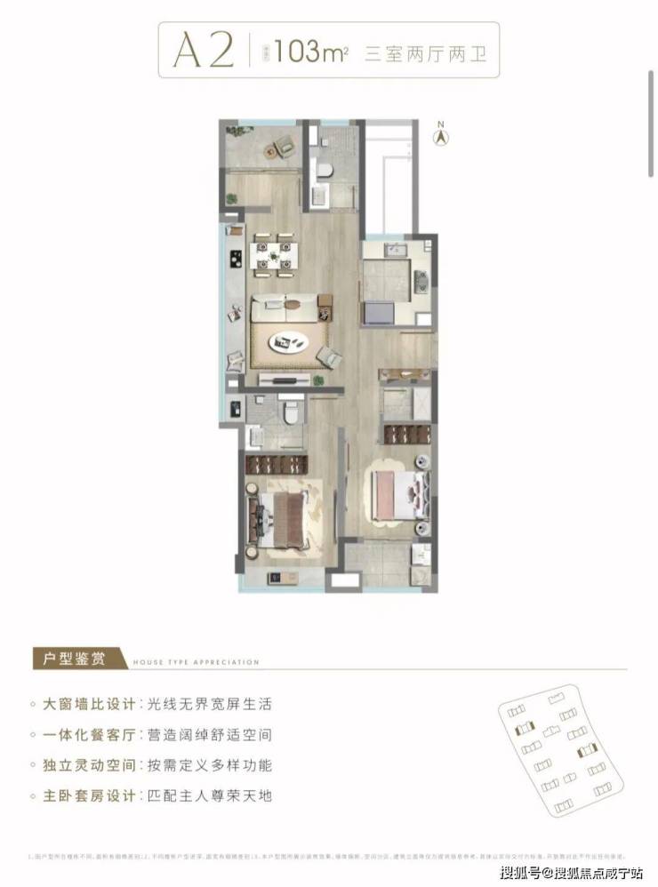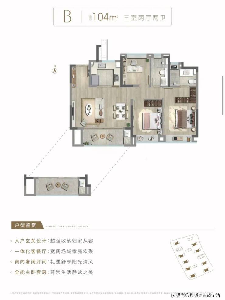 3)建面约104㎡3房2厅2卫,中间套D户型
