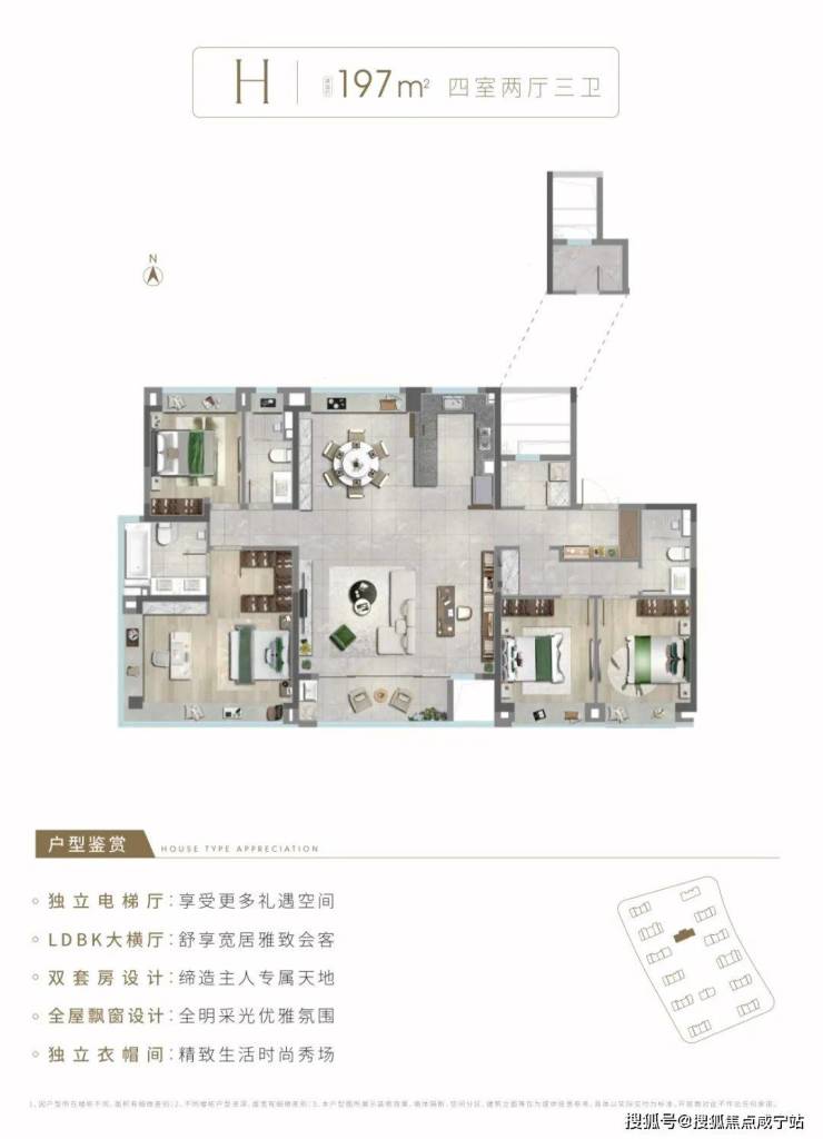约197㎡户型,更约是做到双套房设计,适配大家庭多样化的生活需求!