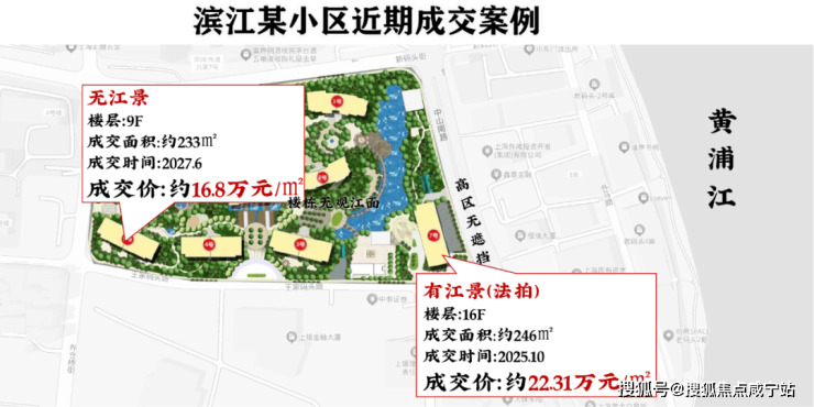 同小区内,拥有江景的房源与无江景房源价差显著,部分差距可达约40%。