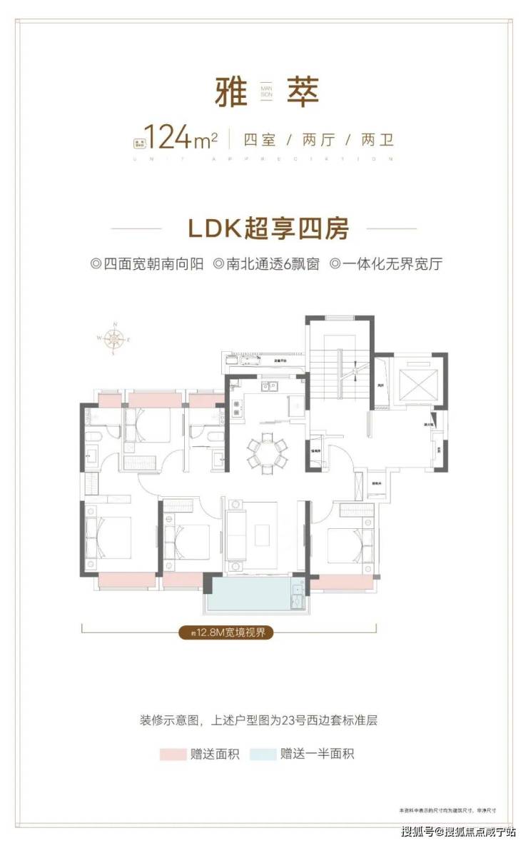 建面约124㎡的4房2卫户型,通常来说是紧凑型的户型。