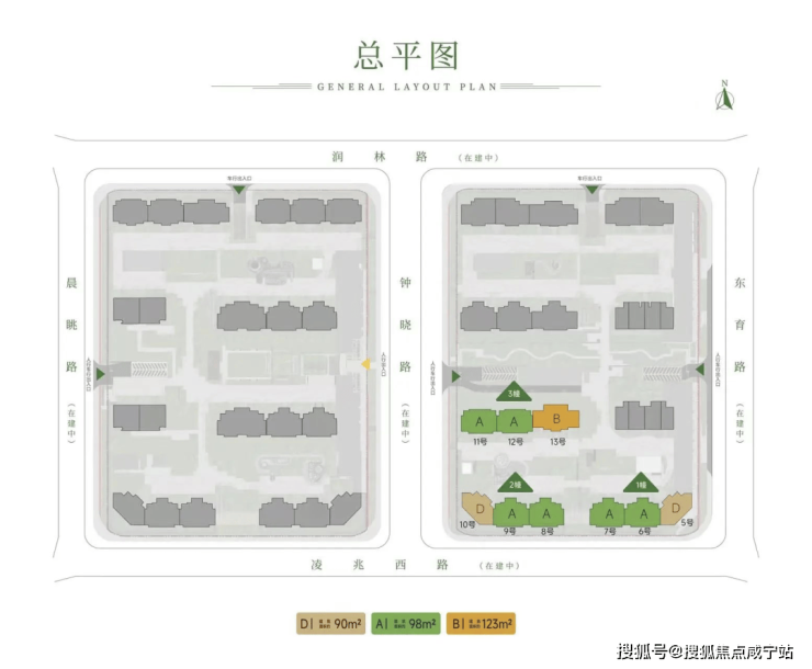 • 99㎡三房:南向三开间 10.2 m,LDKB 一体化,得房率 78%
