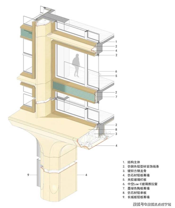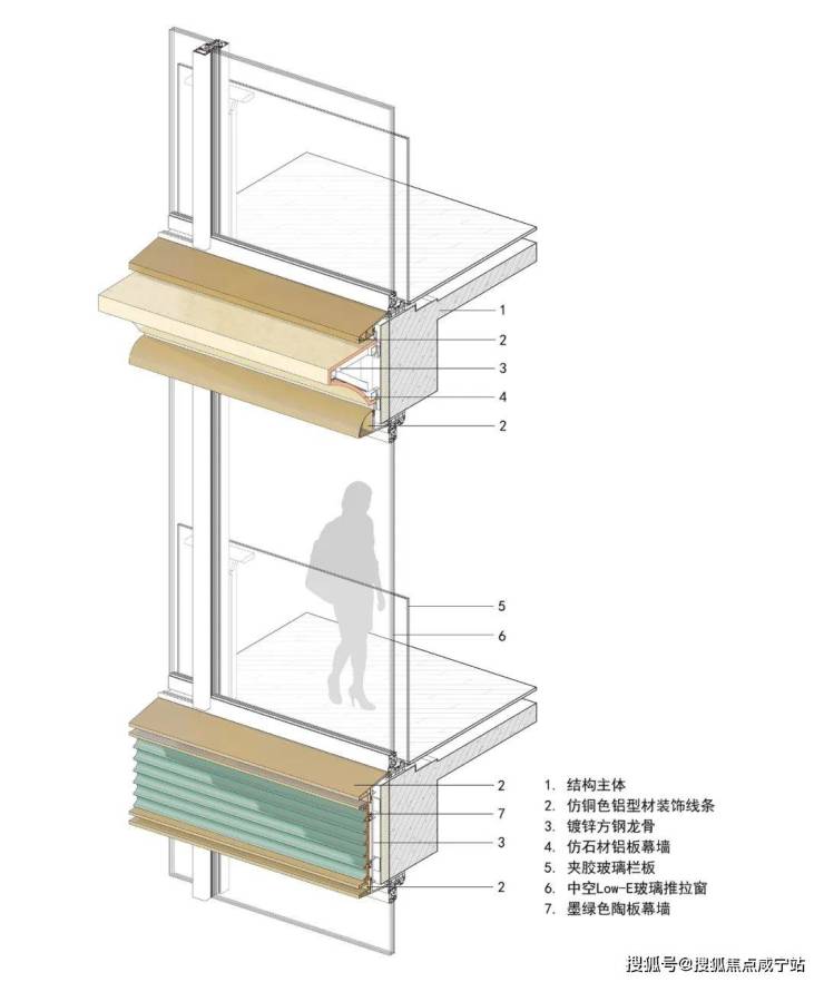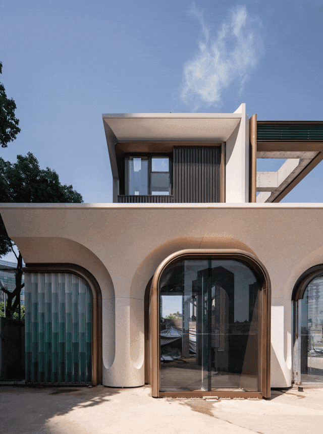 建筑立面采用UHPC、仿石铝板与陶瓷板等材料,景德镇定制的青色釉面陶板,融合传统“雨打青瓷”美学与现代工艺,经由当代幕墙系统呈现,构筑东方肌理与西方理性之间的深度对话。