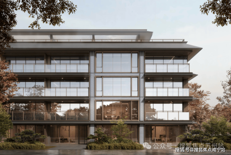 【立面】项目立面通过多种新中式元素构筑东方建筑美学,让建筑本身温润厚重从而历久弥新。横向采用大面玻璃幕墙,保障隐私的同时,尽可能的增大建筑内外场景对话。