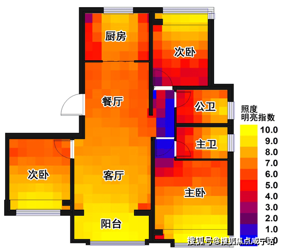 得益于无北连廊和南北通透的设计,虹口源·717建面约140平的户型通风采光数据相当不错。