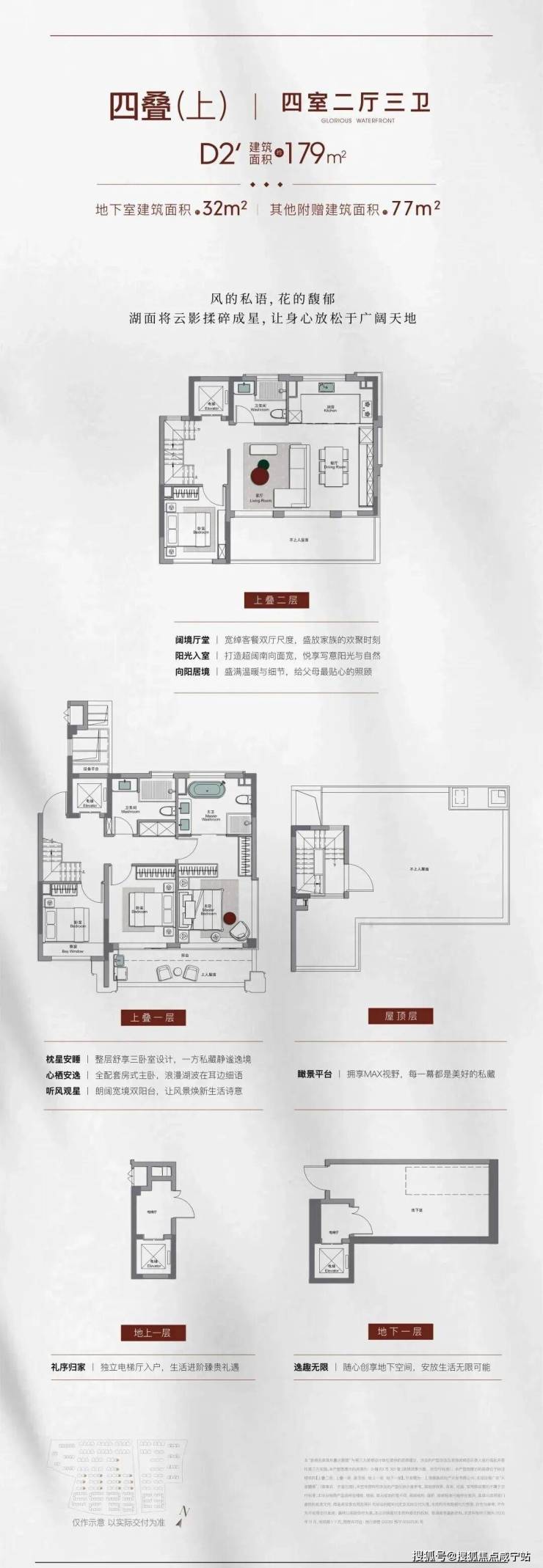约 179㎡四叠别墅上叠户型,有天有地+高得房率+奢阔尺度,买到即赚到!