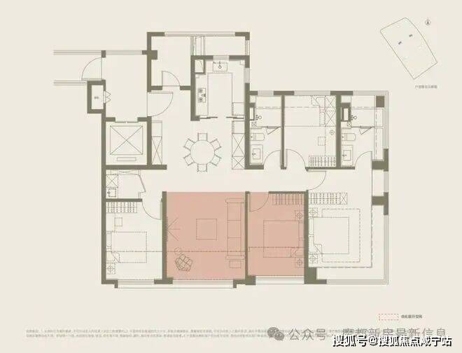 在新规后附赠空间多聚焦多阳台的背景下,环宇玖章144平户型还额外连接设备平台。这片约6.6平的空间,室内使用便捷,采光通风俱佳,可随心改造为小花园、杂物间或专属晾晒区,彻底释放南向阳台的观景休闲功能,其价值约80万。