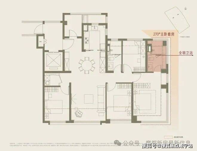 主卧270度飘窗+主卫三飘窗的设计(常规项目不具备),形成“全景舱”般的视野。