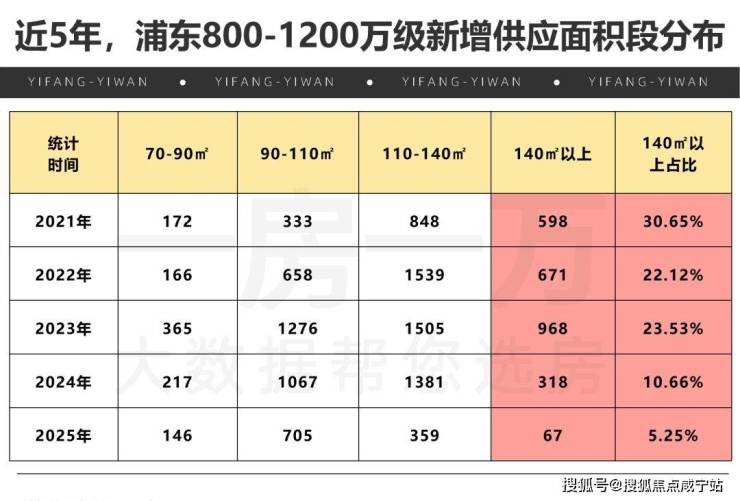 我们再将浦东总价800-1200万级的新增供应,细分到户型,你会发现改善客群面临的形势更为严峻。