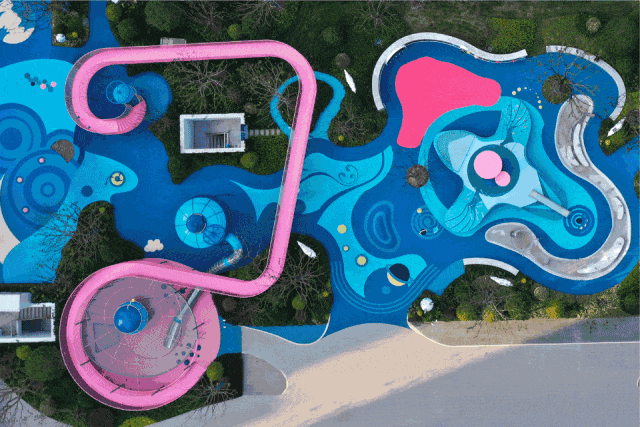其内配备前滩同款的网红粉色沙坑、攀爬架、螺旋滑梯等儿童游乐设施,孩子们可以在此度过欢乐童年。