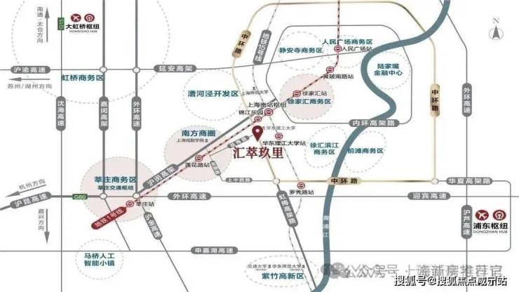 汇萃玖里 坐落闵行与徐汇区主城的交界的黄金中环地带,中环上中西路下匝口,虹梅南路与益梅路交汇处、东至虹梅南路(中环高架)、南至北潮港、北至益梅路。