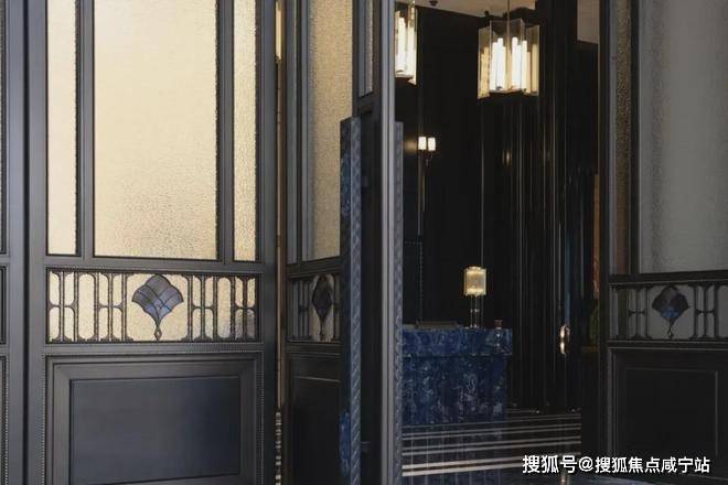 细节之处,光是一个接待台,就采用了产自玻利维亚约4500米海拔的高原矿脉——玻利维亚蓝石材,是世界上储存量最少的石材之一,非常珍贵;而大堂的柱子,也是巴西乌金奢石;