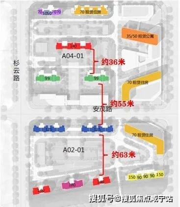 北侧地块140㎡户型楼栋与99户型楼栋距离约36米,但两排建筑是错开的!140㎡户型楼栋采光和视野极佳!