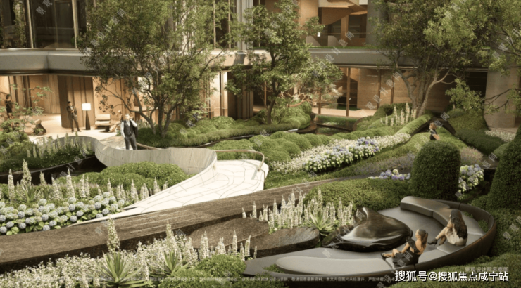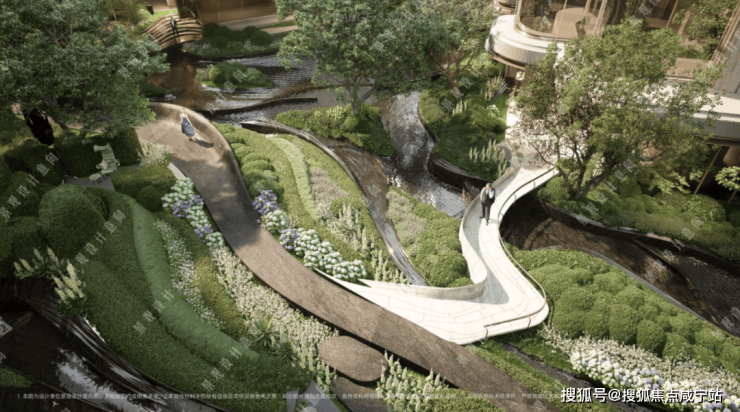 整体楼栋的抬升设计,增强了社区的私密性,并促进景观在立体层面的渗透,营造出“一楼一岛,浮空花园”的独特场景体验。