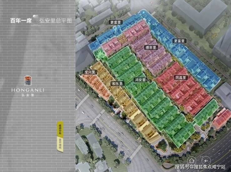 弘安里这块地原由8个街坊组成,其中东寿坊和永安里因后期加建改建较大,体量也很小,为了园区整体考虑,不再保留, 延续了剩余6个组团:德年里、和乐里、宝兴里、更富里和鸿安里。