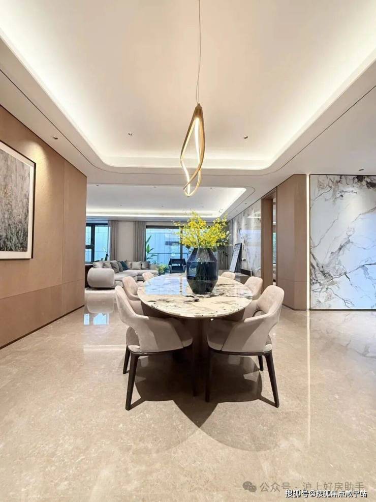 室内设计,秉承摩登东方的理念,设计以人、生活为中心,从空间本体和情感层面都回归生活,270度环幕采光,开放式会客厅设计,兼具尺度感与功能性。