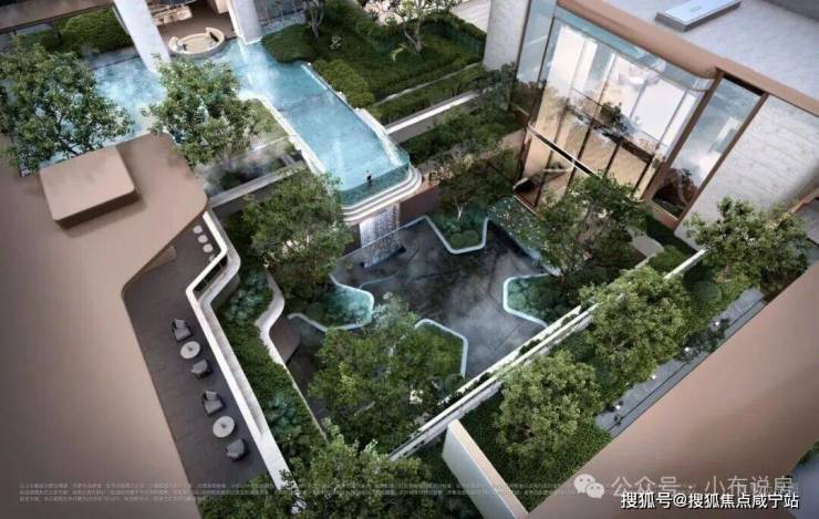 •下沉峡谷:约420㎡丰富层次立体下沉庭院,区域首现悬浮水池,搭配4.3米飞瀑,塑造沉浸式度假感受