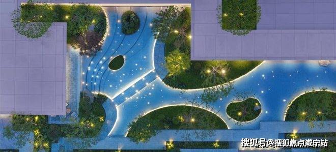 而大华星曜不仅打造了具有曲线美感的树池,还在水景底部铺了数百片蓝钻瓷片,全角度弧形定制,水刀切割,用金属线条勾勒出水波的形状。