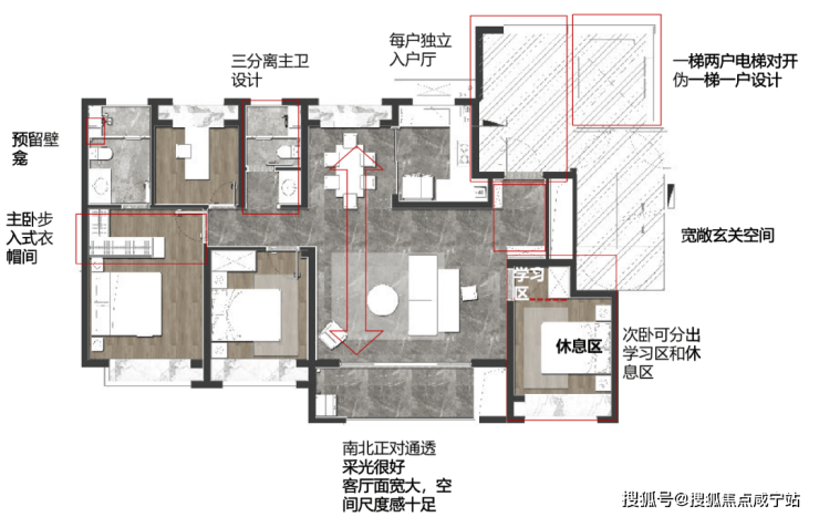 建面约136㎡的4房2厅2卫更是有豪宅大平层的空间感和功能划分。