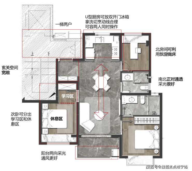 宽敞的玄关和U型厨房与百平三房类似不多赘述。