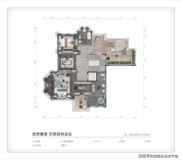 DOUBLE TERRACES 宽景双露台:D户型主卧连接约18㎡阳光露台,送给太太一年四季的空中花园;C户型次卧连接约50㎡宽景露台,送给孩子的空中游乐园。