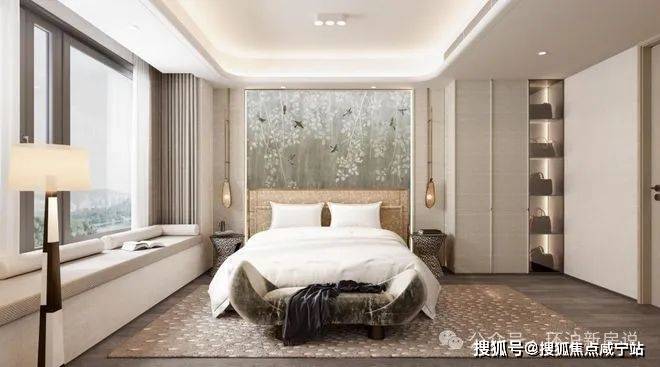 主卧套房设计,搭配步入式衣帽间,为主人打造一个既舒适又私密的休憩空间。