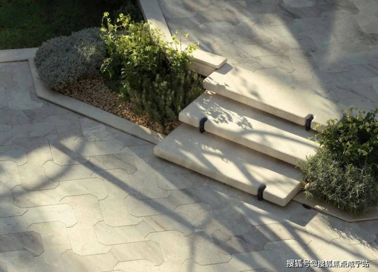 呼应项目整体景观的轻柔调性,项目将石材雕琢成细腻圆润的形态,创造空间元素的趣味性与记忆点。像是珠宝般镶嵌在台阶上的撞色石材,项目DECO的是艺术、也是专属于上海的安澜美学。
