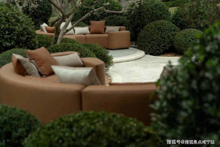 面向主建筑群右侧,是名为Argento的意大利花园。园如其名,以银叶橄榄为主题树种,营造出银光微烁、如月华般柔和优雅的意式氛围。花园以私宴厅为核心,银叶橄榄围合出亲切的尺度。