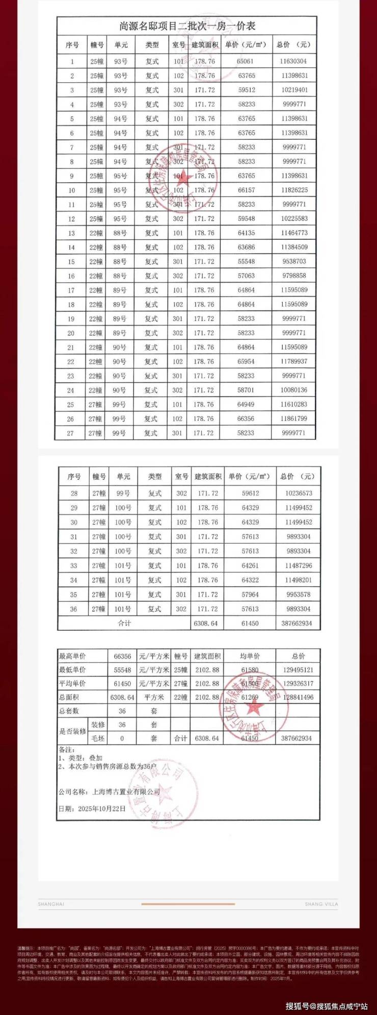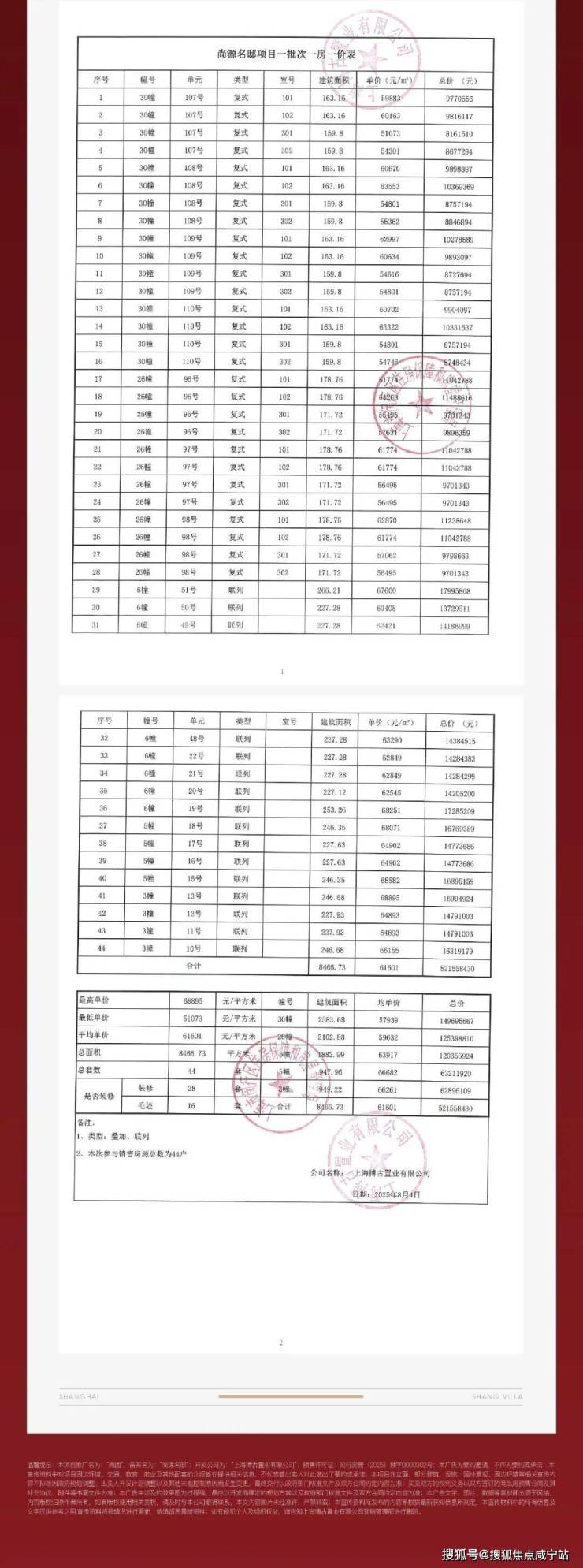 叠墅均价约5.9万/㎡(含高配精装),联排/合院均价约6.5万/㎡!