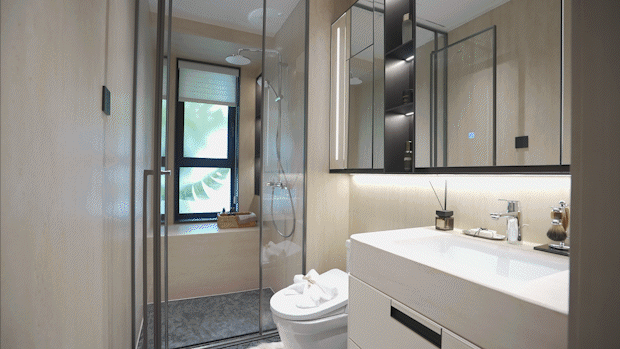 卫生间甄选唯宝、当代等知名品牌,生活质感肉眼可见。