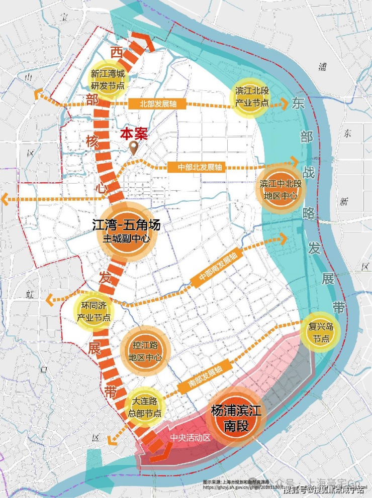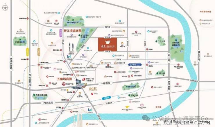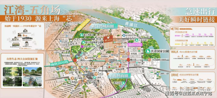 【核"芯”战略交汇处】项目占位中部北发展轴与西部核心发展带战略交汇处,紧邻上海科创源,通过五角场和新江湾两大核心区域辐射,汇聚上海高光资源,以未来世界生活秀场,坐拥板块发展红利