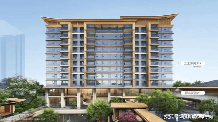 项目打破了传统社区的营造方式,通过约5.4米“全域抬板”的超级底盘设计,将社区垂直分为全域基座、浮岛花园、云上洋房三重境域,实现了更低密、更立体、更安全、更具视野平权的六维革新,为宝山树立了全新的湖居范式。