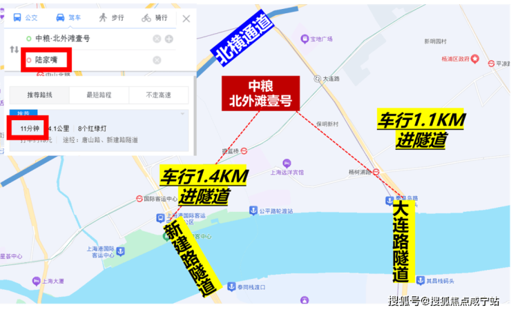自驾上,项目往北约300米就是北横通道,往南车行约1公里,就是新建路隧道和大连路隧道直达浦东。从项目到陆家嘴、北外滩和外滩都在左右。