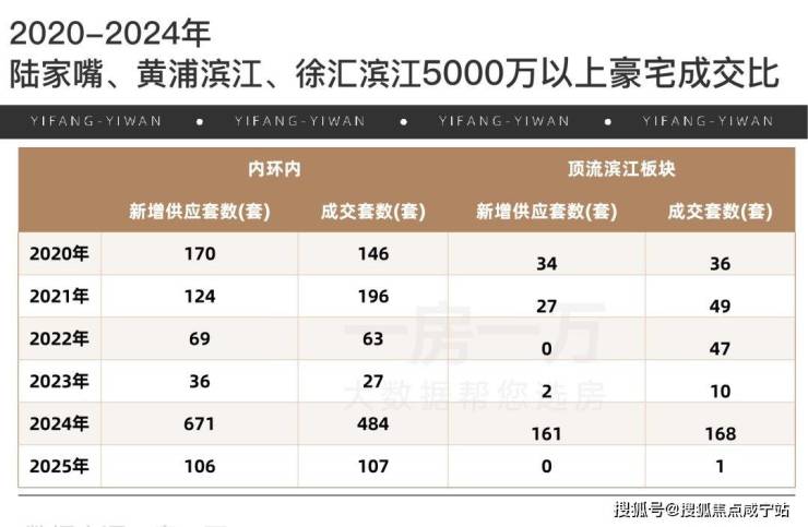 回溯 2020 年至 2024 年,尽管内环内 5000 万以上的豪宅市场表现不一,可顶流滨江板块的新增房源套数不仅稀少,且一直难以满足市场需求。