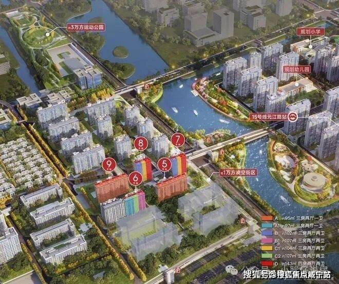 这座百万方滨水TOD大城,以15号线元江路地铁站点为核,从莲花南路到都会路整合片区,涵盖7大业态,约百万方大体量:
