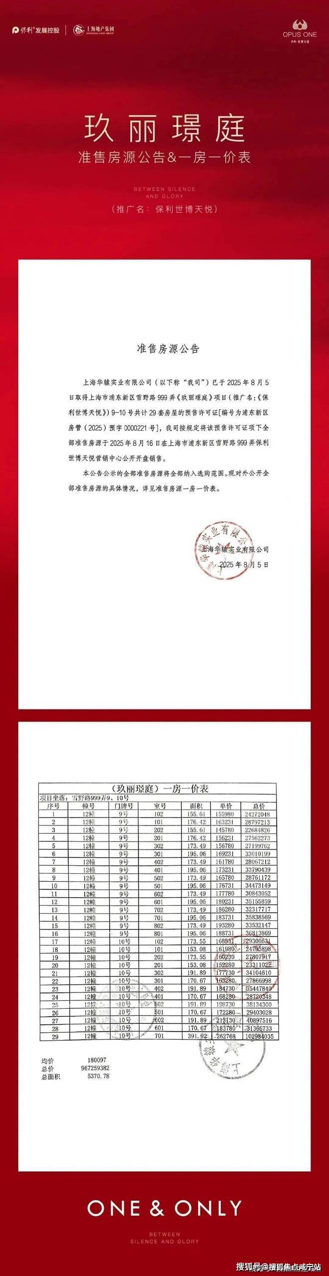据悉,今年的新房房源单价天花板很快要被保利世博天悦自己打破!6月5日开启认购的3#楼王中,房源单价将再度刷新今年上海顶豪房源单价,达到302666元/㎡;“隐藏款”建面约500㎡天幕平层,总价一亿起,真正的“一亿一宅”!