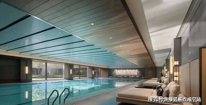 项目配备了约2600㎡双首层地下会所,只对小区业主开放。以下沉式布局拓展双层立体空间,让内部得以容纳私宴厅、半标恒温泳池(配4条泳道)、健身房、会客厅等多功能场景,并结合叠水、树阵、庭院等园林景观,实现内外空间的交互,拉近人与自然的距离。