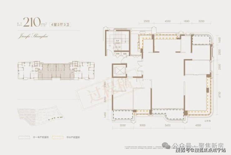 经过专业建筑师测算,该户型的客厅南向开间达到3.9米,入户门到公卫的距离足足5.35米。