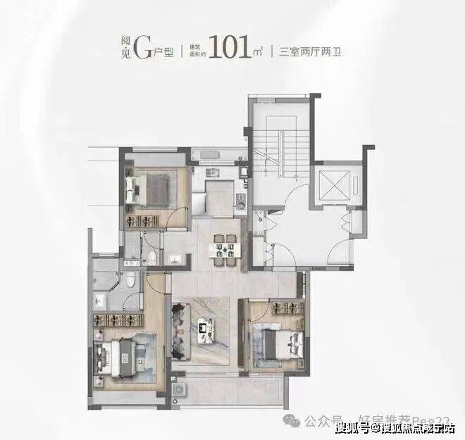 ✅✅华发·海上都荟售楼处电话:400-8800-703✅✅建面约101㎡的F和G户型都是市面上备受认可的飞机经典款户型。南北通透保证了良好的通风效果,三开间朝南保证了充足的光照。