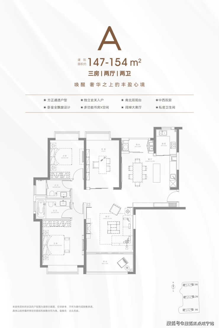 建面约150㎡左右的大三房,通透方正,整体客厅面宽约4.5米,主卧面宽约4米,空间感十足!独立玄关、中西双厨、南北双阳台、卧室全飘窗,每个空间都阔绰舒展,让人松弛感拉满。