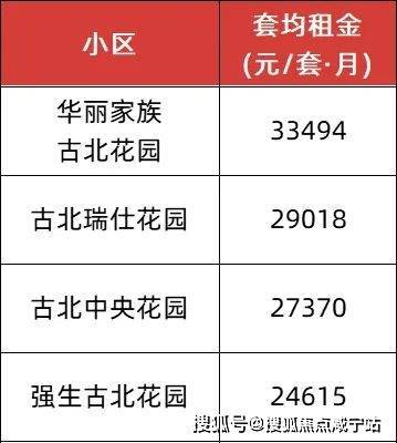 从中指研究院数据来看,古北租金前十楼盘的套均月租金,都超过2万,来看典型楼盘:
