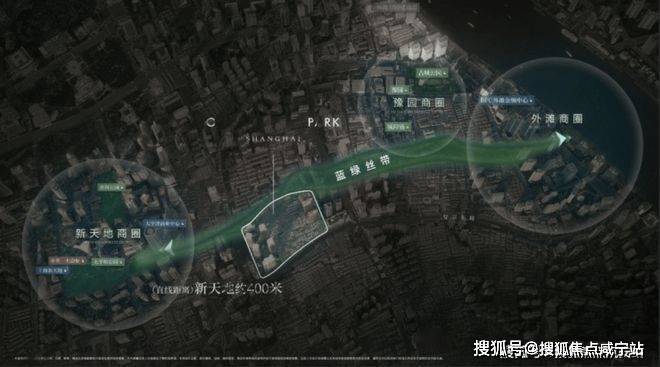 距离新天地直线距离约400米,作为蓝绿丝带规划上的关键节点,随着大新天地东进南拓战略逐步实施,通过水景、绿地和公共空间,串联新天地、豫园、外滩三大世界级商业版图.
