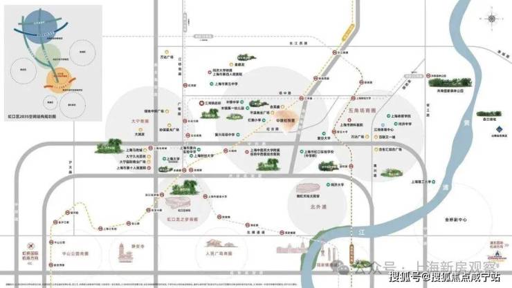 虹口中环 启新发展内驱力:根据虹口2035规划,将构筑“一核三片两轴一环”发展格局,提升城区能级和核心竞争力,实现“人文虹口,魅力之城”的总目标。(信息来源:虹口区规划和自然资源局)本案距中环直线距离仅约600米,优享区域发展优势与内中环利好辐射,以高品质住区匹配城市发展潮向。