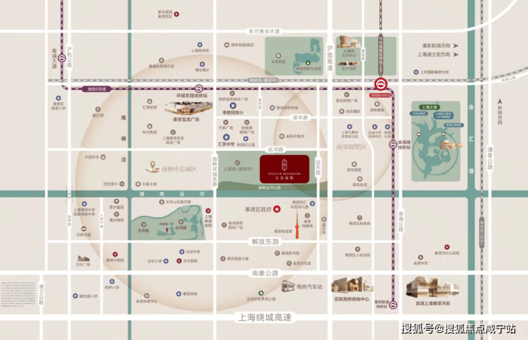 从区位方面,奉贤宅地位于南桥核心地段,南侧紧邻浦南运河,北侧有S4高速出入口,紧邻地铁5号线环城东路站,1站至望园路站还可换乘15号线(南延伸段在建),进站直达紫竹高新园区和莘庄城市副中心,北侧还有市域南枫线(在建)环城西路站,周边三轨交环绕.