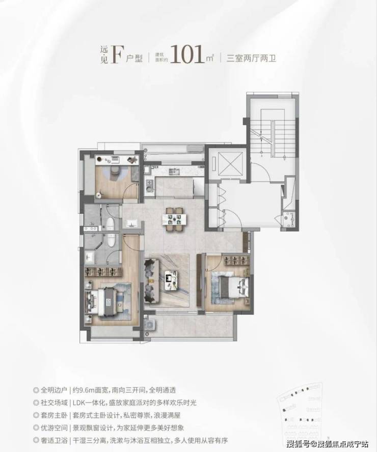 建面约101㎡H户型:三面采光,全能景观王炸边厅户型!
