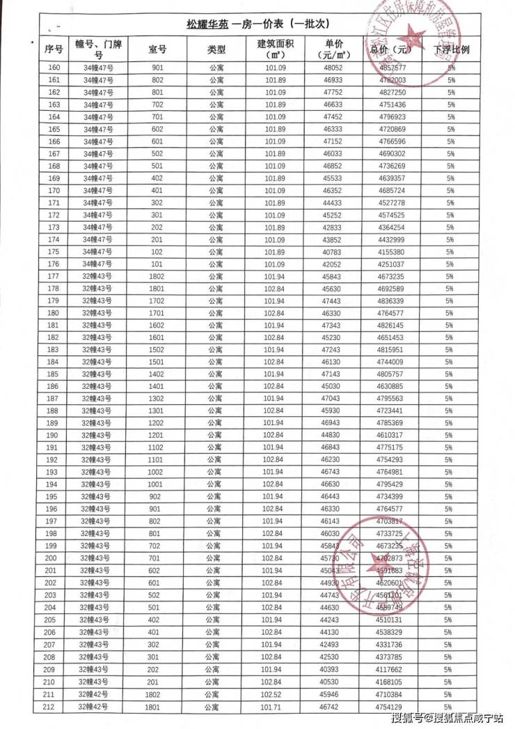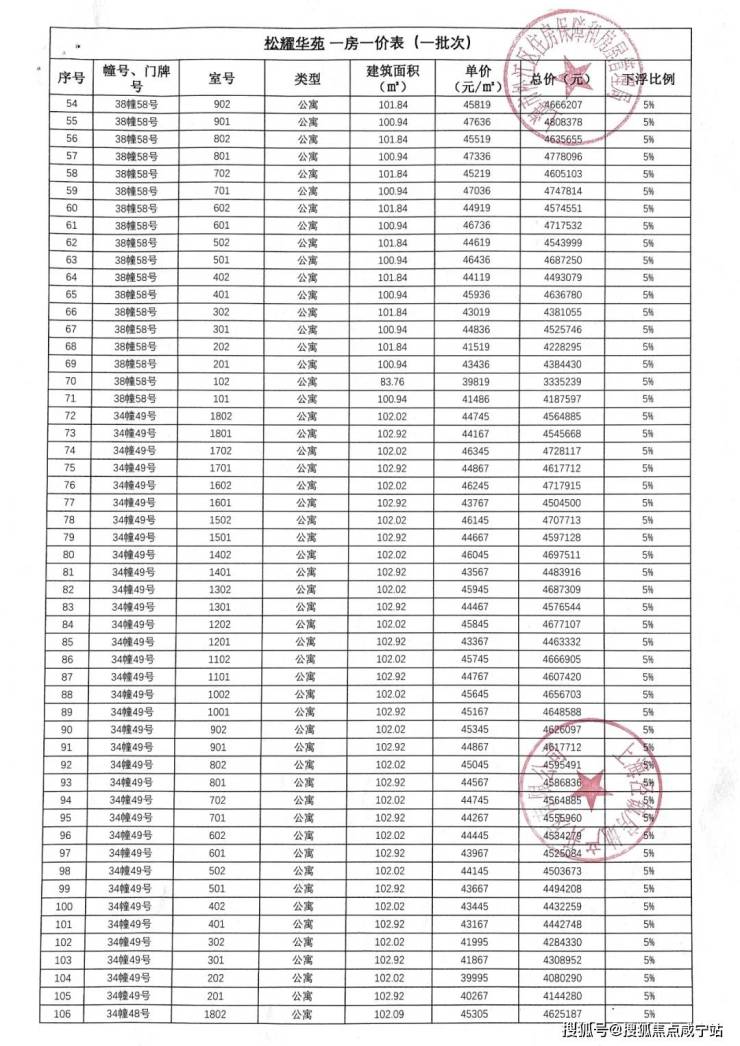 「一房一价表」