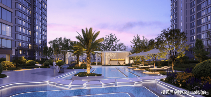 「海玥云庭」参照国际度假酒店造景理念,在小区的C位设置了中央观景水池,让未来的每一位家人,在繁忙的城市生活中,因为水的滋养,沉浸内心的安宁,也让度假生活的向往始终如新。